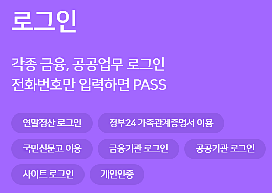 PASS앱설치를 통해 본인인증 로그인을 쉽게 진행해보시길 바랍니다.